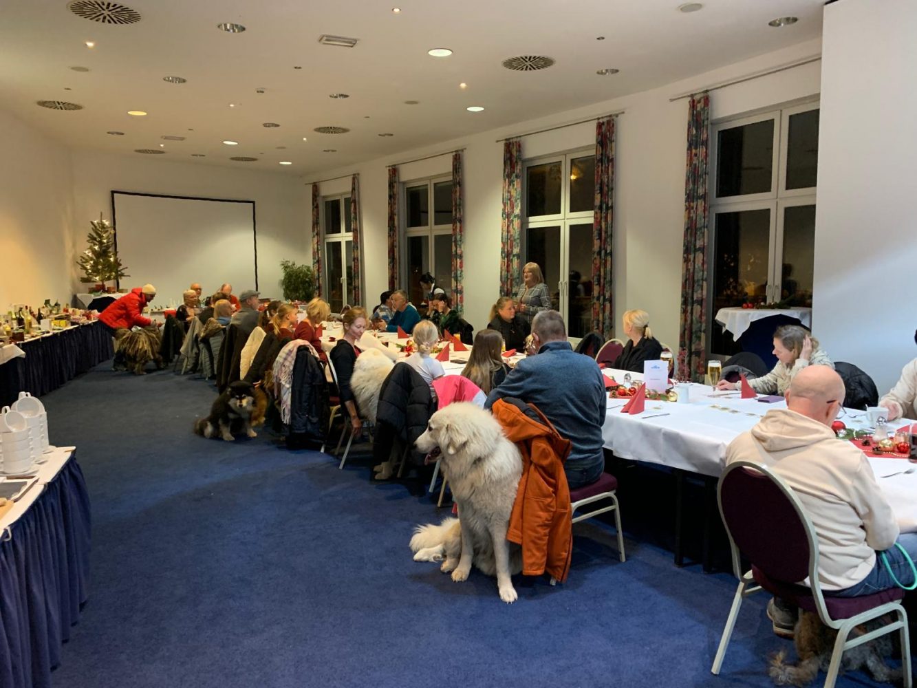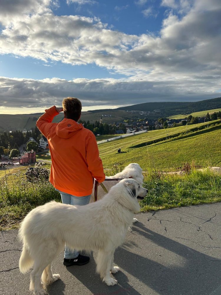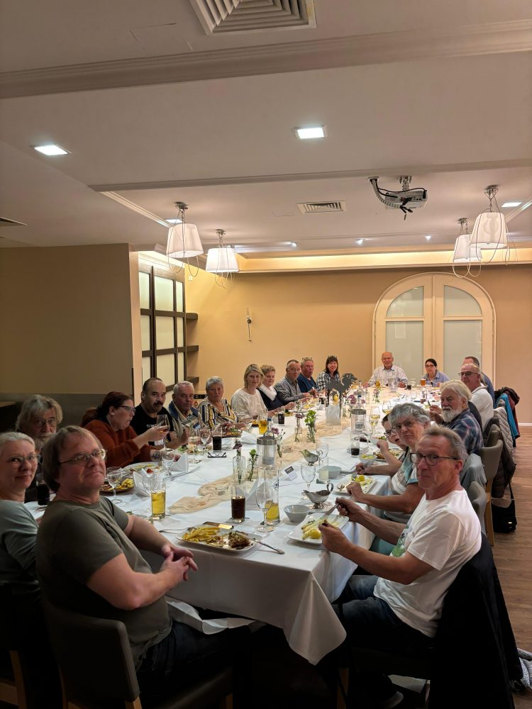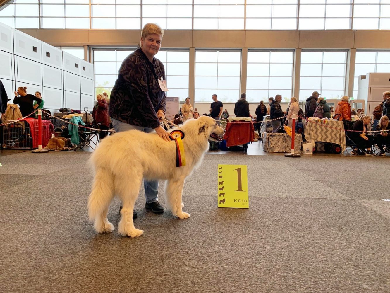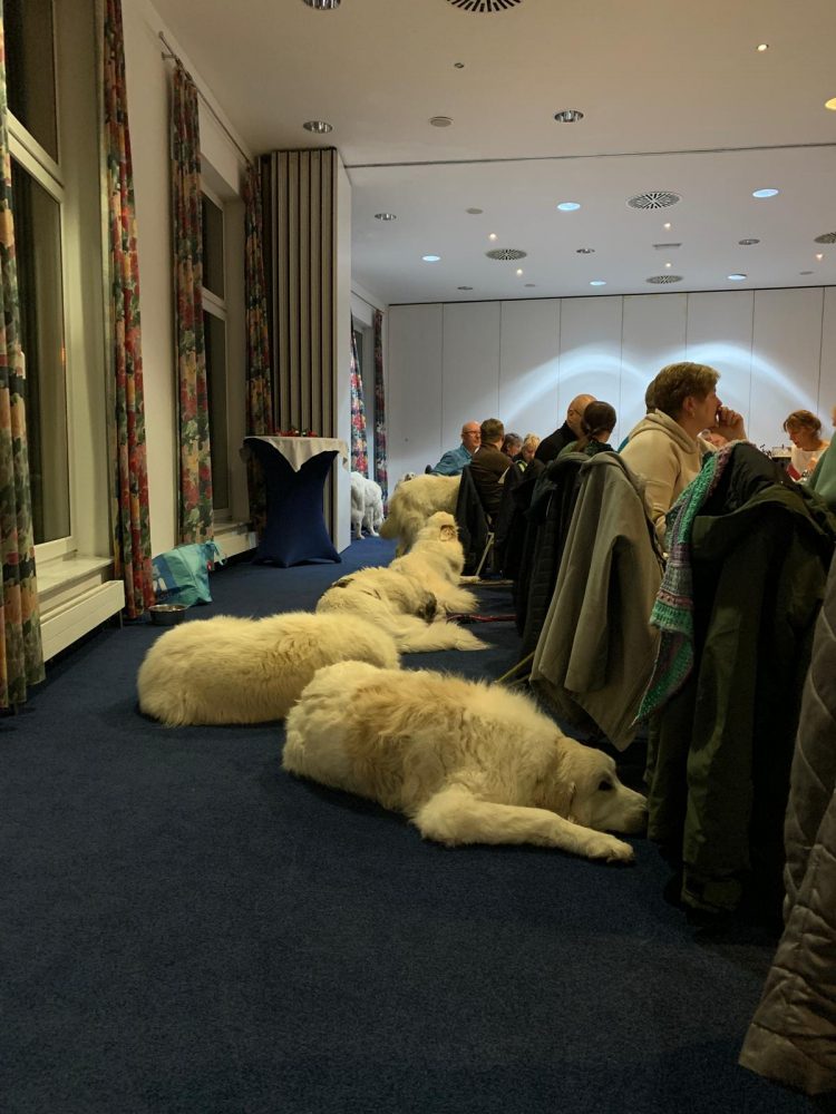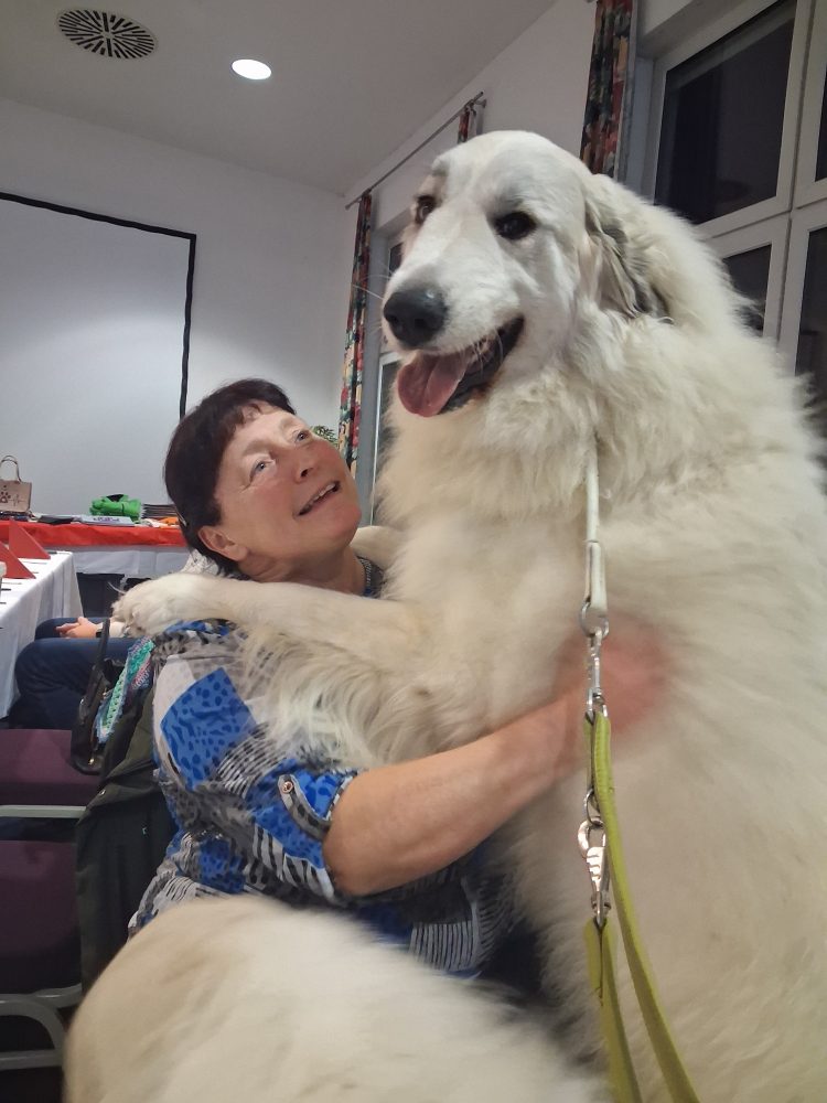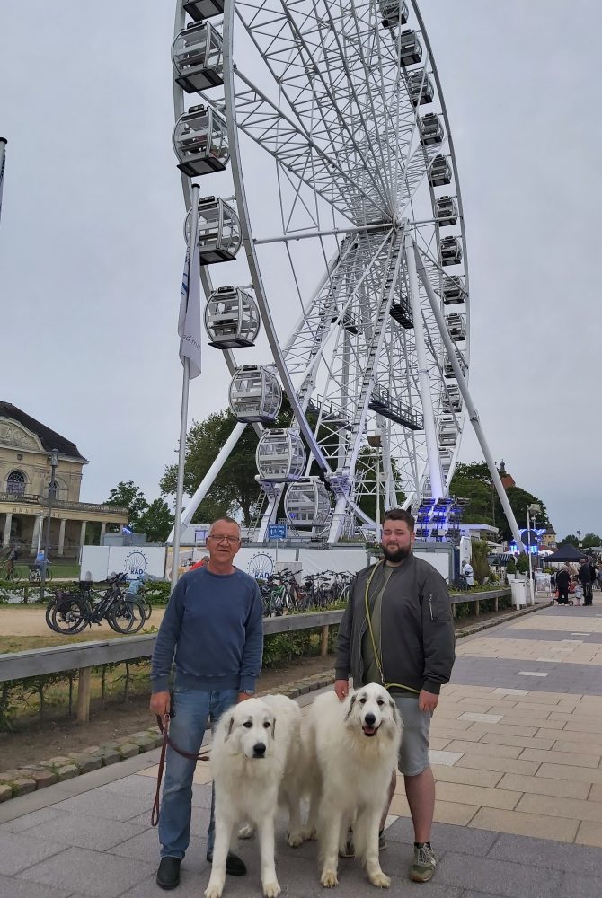 11. Mai 2025 - Klubschau des KfUH im Van de Valk - Resort in Linstow Unsere Landesgruppe 3 war in diesem Jahr für die Organisation verantwortlich. Wir hatten ein kleines touristisches Programm - eine Stadtführung in Warnemünde - angeboten, die von 20 Personen mit ihren Hunden wahrgenommen wurde. Abends gab es im Hotel ein gemütliches Beisammensein. Am Sonntag fand dann die Klubschau statt, auf der unsere Tara Beste Hündin und Siri Beste Veteranenhündin wurde.