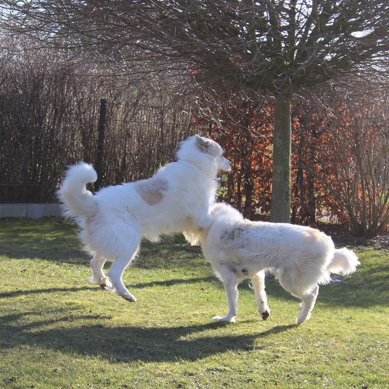 Draußen fühlen sich die Welpen richtig wohl - gibt es dort doch so viele Spielmöglichkeiten. Und das auch bei dem derzeitigen Aprilwetter. Dann haben sie ihren "Indoorspielplatz".