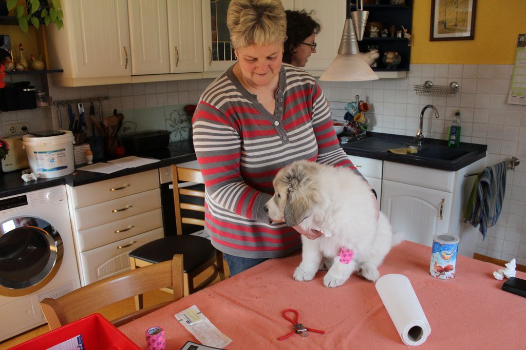 Auch die letzte Woche hier bei uns war wieder ereignisreich. Unsere Zuchtwartin, Frau Schindler, war zur Wurfabnahme da. Die Welpen wurden genauestens begutachtet - gewogen, Augen, Ohren, Zähne, das Gangbild wurde begutachtet.Alle vier waren ganz lieb und haben gut mitgemacht. Zwischendurch wurde ausgiebig mit Mama Siri getobt.