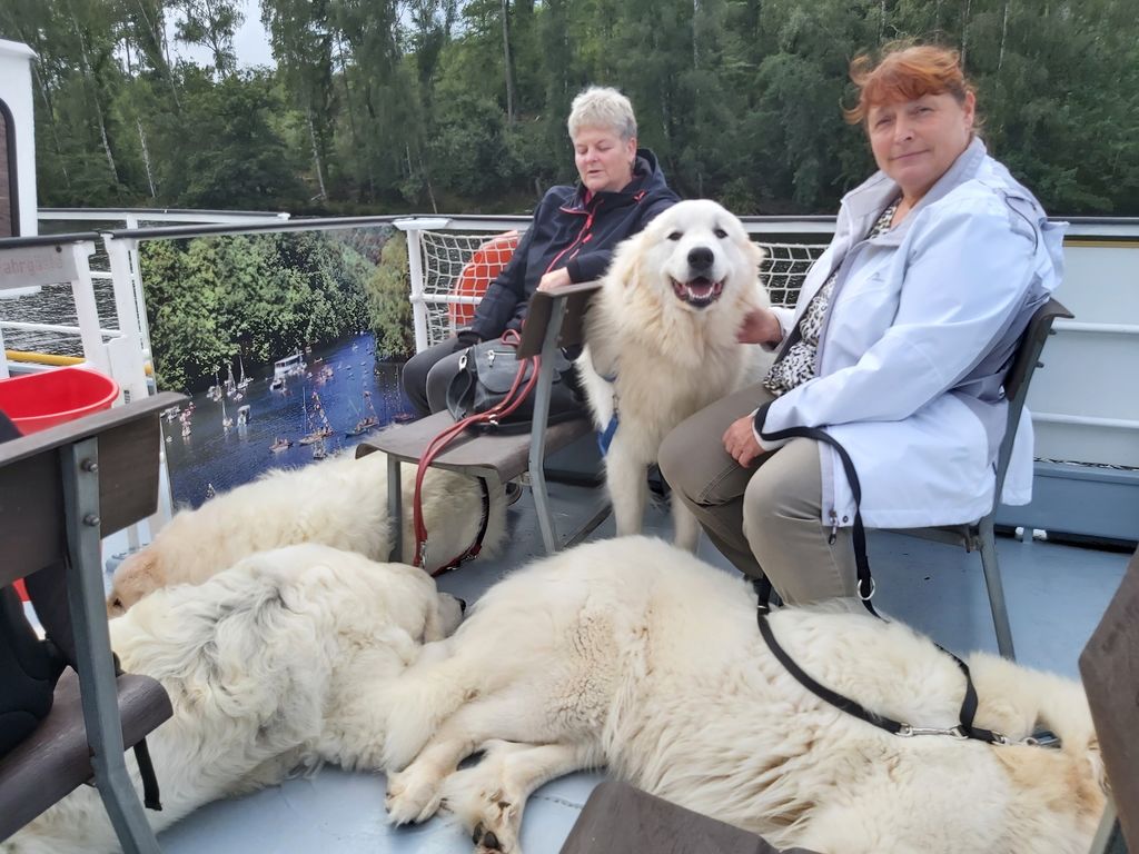 Dann ging es weiter zu unserer lieben Freundin Mandy. Von dort aus starteten wir dann zu unseren Ausflügen. Da das Wetter leider alles andere als schön war, waren wir schon froh, wenn es mal nicht geregnet hat. So waren wir zusammen auf einer Bootstour auf dem Stausee der Talsperre Kriebstein. Natürlich waren unsere 4 Mädels mal wieder eine Attraktion. Die größte Herausforderung war die sehr steile Metalltreppe zum Oberdeck - aber auch diese Hürde meisterten sie perfekt.